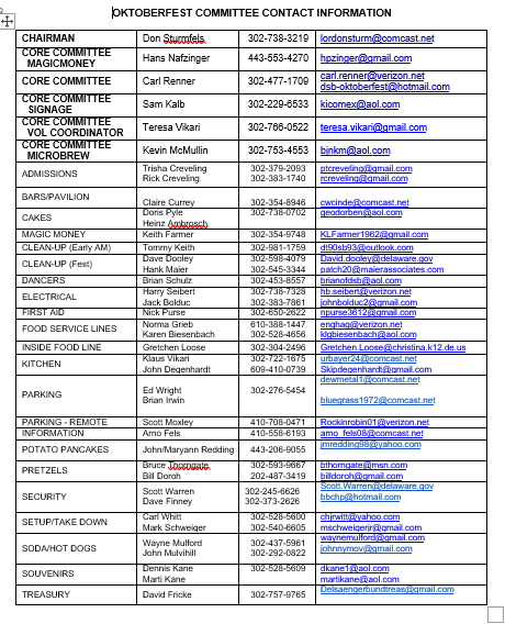 Oktoberfest is almost here! We need your help! Please sign-up with one of the Committee Chairpersons listed below to work during Oktoberfest. We also need help setting up before the festival and breaking down the festival after the event.
