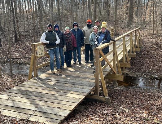 It was a nice winter day for hiking with the temp in the upper teens. We followed the DSB Trail through the woods and over the sturdy bridge erected by the scouts. We also found some nice trails to explore on the adjoining properties behind ours. About four miles later we found ourselves back at the club for some hot chocolate and schnapps.